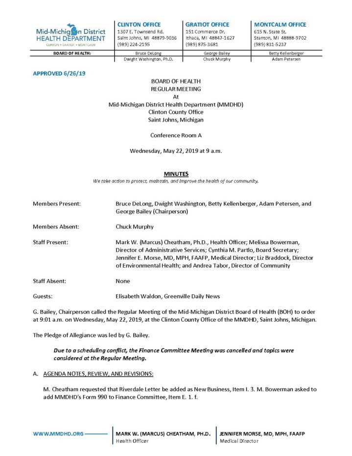 2019-5-22 BOH Minutes | MMDHD District Health Department