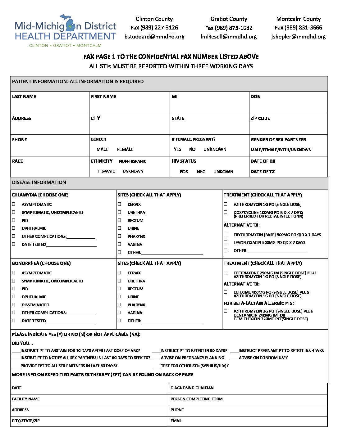STI REPORTING FORM 2019 | MMDHD District Health Department