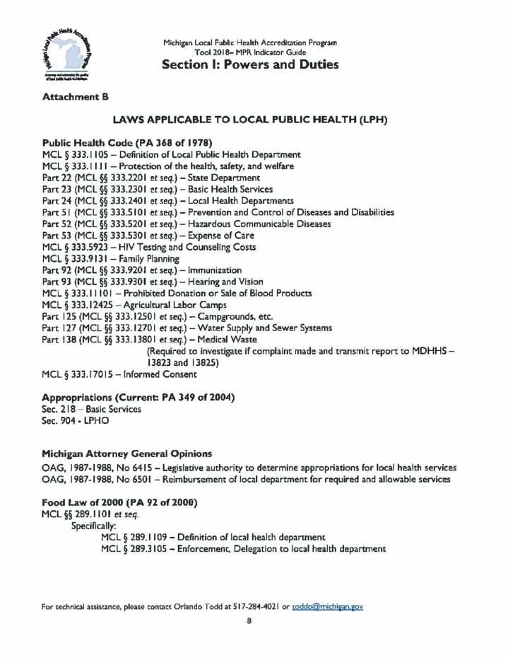 Laws Applicable to Local Public Health | MMDHD District Health Department